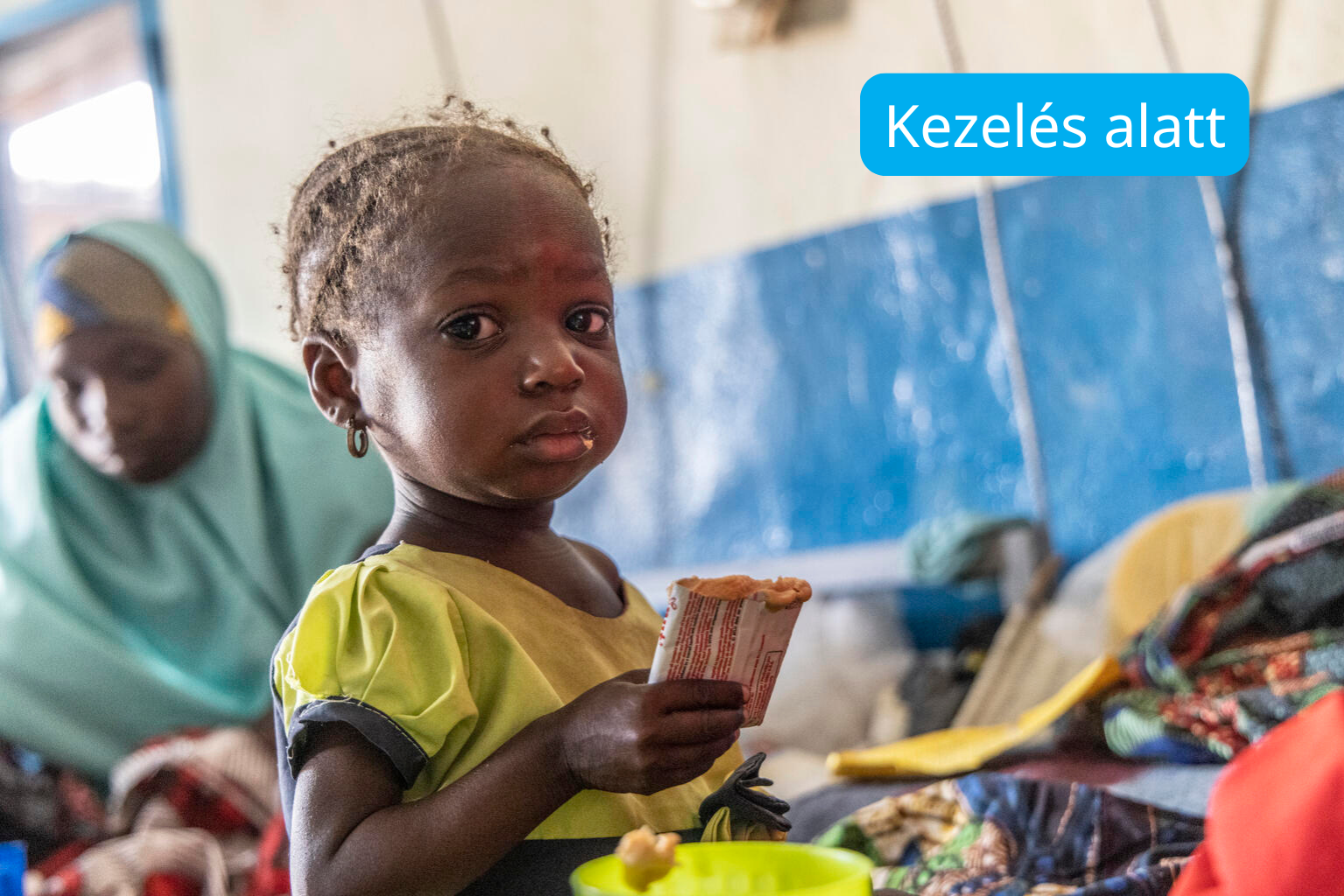 A kislány azonnal intenzív osztályra került, és megkezdődött a kezelése. Hat héten át naponta két adag Plumpy’Nut terápiás élelmiszert kapott, ami egy mogyoróalapú pép, amelyet kifejezetten súlyosan alultáplált gyermekek számára fejlesztettek ki. Kis tasakban biztosítja mindazokat a tápanyagokat, vitaminokat és ásványi anyagokat, amelyek egy legyengült gyermek szervezetének a felépüléshez szükségesek.