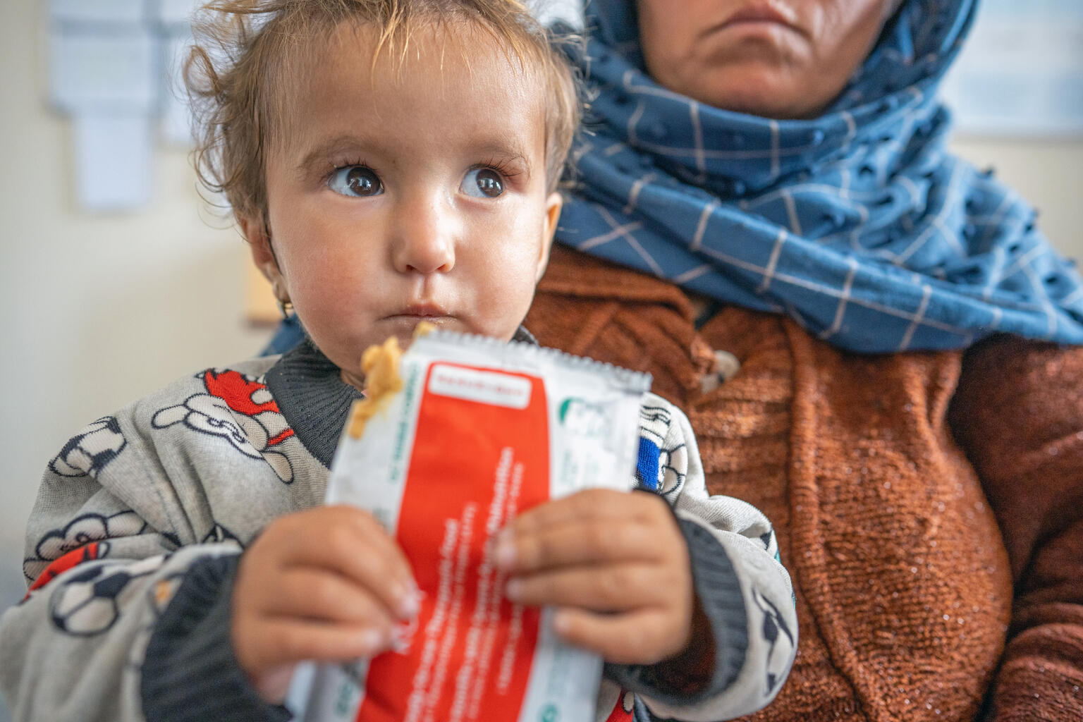 Azaan Ali, 16 hónapos kisfiú Pakisztánból, akin egy UNICEF által támogatott mobil egészségügyi klinikán felkarmérést végeztek, és alultápláltság jeleit mutatta. A kisfiú 20 napig napi egy adag Plumpy’Nut terápiás élelmiszert kapott, és családja azóta is rendszeresen viszi ellenőrzésre, hogy biztosan jó úton haladjon a felépülése felé.