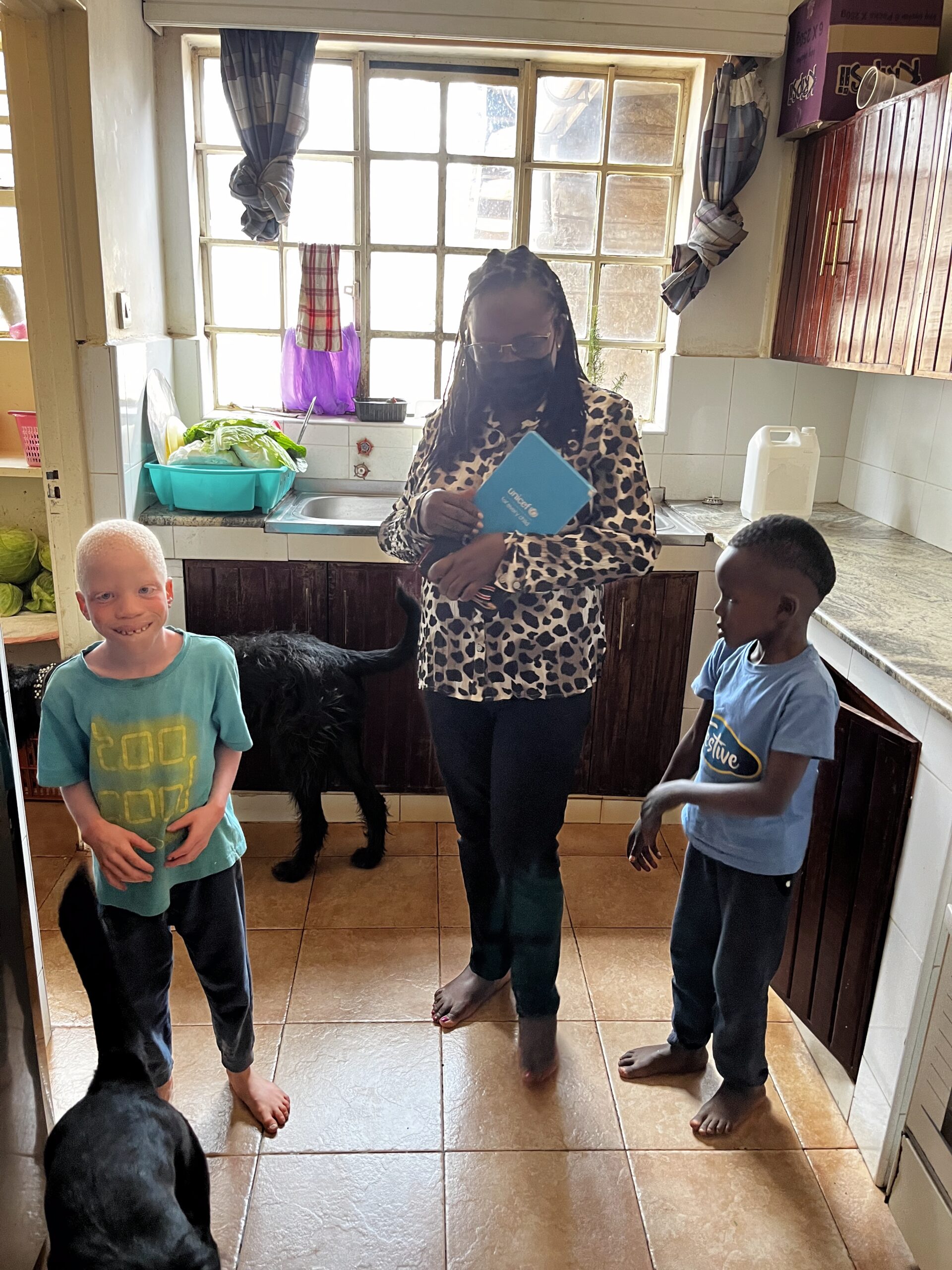 A gyermekek között van egy albínó kisfiú is. Végtelenül kedves és vendégszerető, aki lelkesen kalauzol végig minket a kerten. Minden zugot megmutat, friss leveleket keres a fekete teheneknek, amelyek hálás bőgések kíséretében majszolják azokat. Az albinizmus egy veleszületett állapot, amely mindennapos odafigyelést igényel: a pigmenthiány miatt fokozott fényvédelemre van szükség, és sok érintett látásproblémákkal küzd. Még súlyosabb gond azonban a társadalmi kirekesztés.