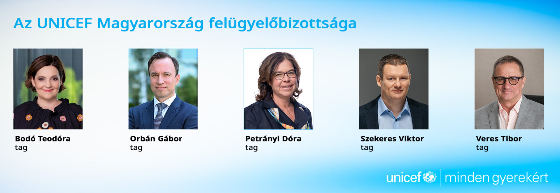 Az UNICEF Magyarország kuratóriumához és felügyelőbizottságához 2025-ben új, az üzleti élet meghatározó szereplői csatlakoztak, akik szakértelmükkel és tapasztalatukkal támogatják a szervezet társadalmi beágyazottságát. A frissen érkező tagok saját területük elismert szakértői, akik tudásukkal, kapcsolatrendszerükkel elkötelezetten járulnak hozzá az UNICEF gyermekekért végzett munkájához. A megújulás részeként Surányi György korábbi kuratóriumi tag és felügyelőbizottsági elnök vezetésével megalakul az UNICEF Baráti Kör, amely új platformot teremt a hosszú távú társadalmi támogatás és szakmai együttműködések fejlesztésére.