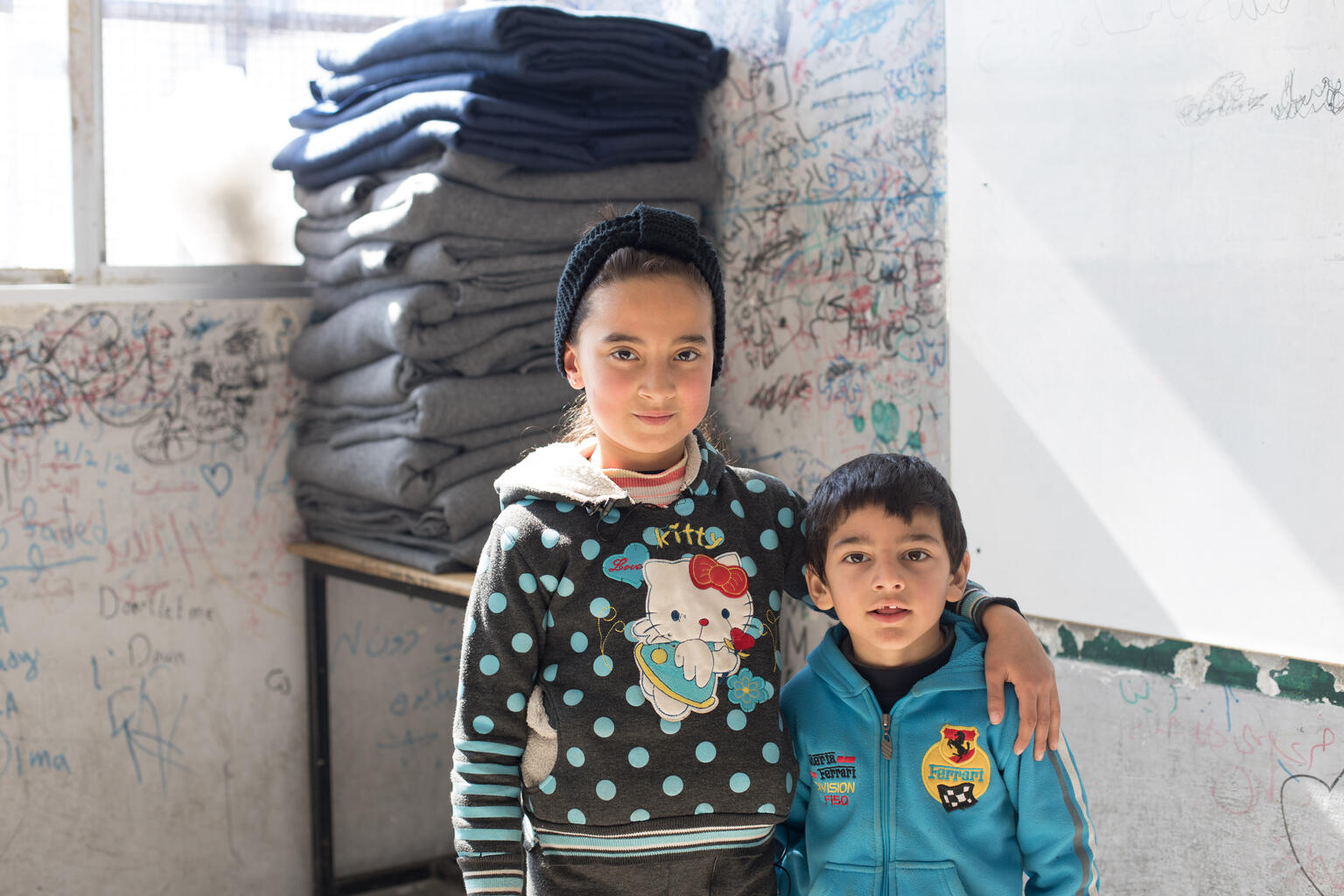 A kislány egy matematika órán vett részt az UNICEF úgynevezett tanulómozijának részeként egy iskolává alakított menedékhelyen. Az oktatás folytatásának érdekében hozták létre a tanulómozit, amely az UNICEF új, digitális tanulási programjának része Szíriában. Ez a megoldás különösen azokon a területeken fontos, ahol megsérültek az iskolák.