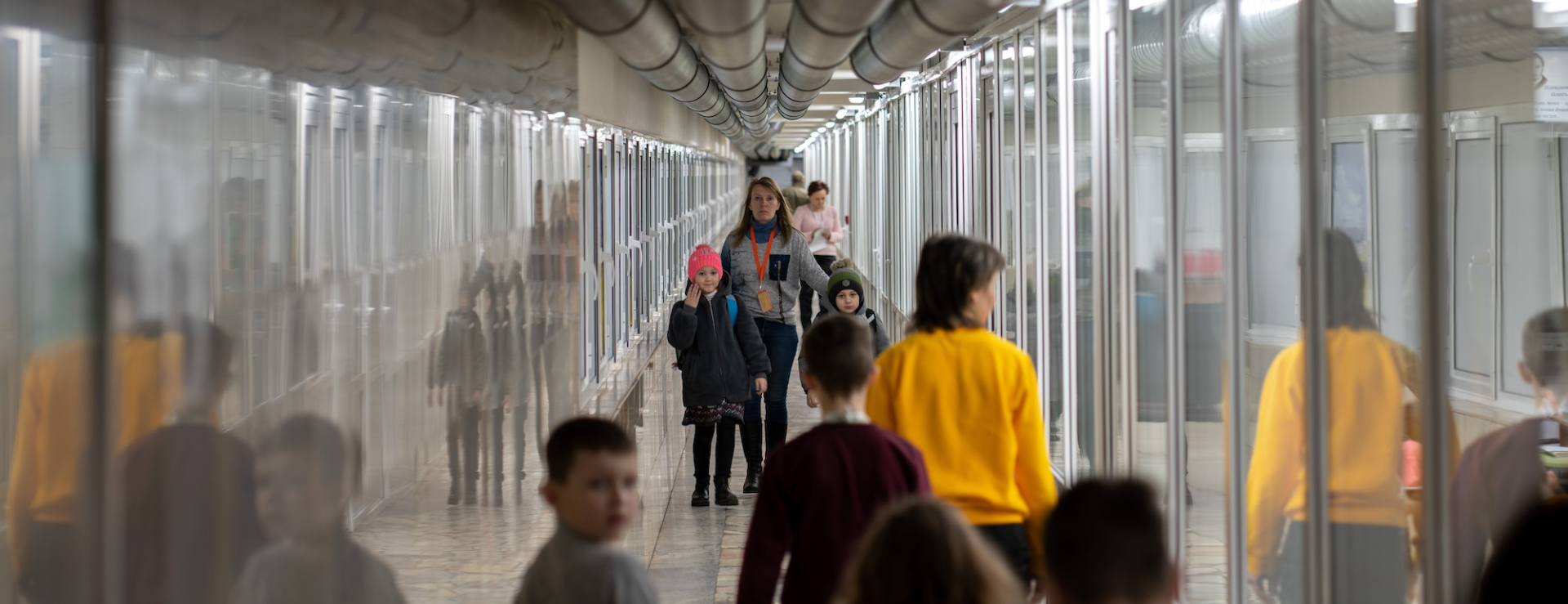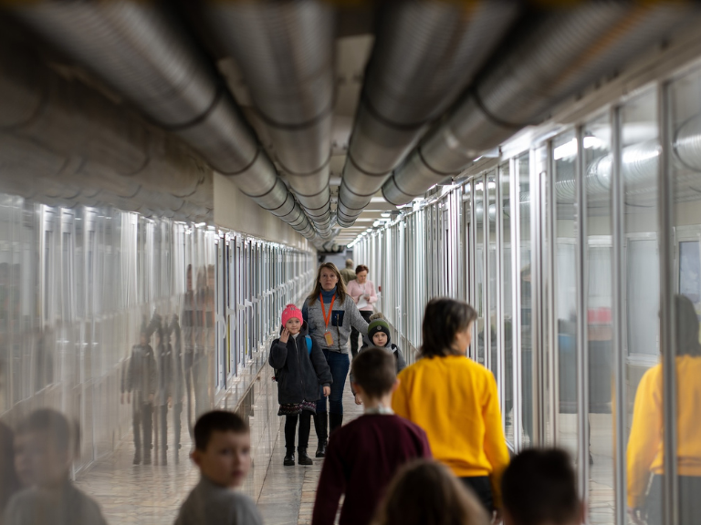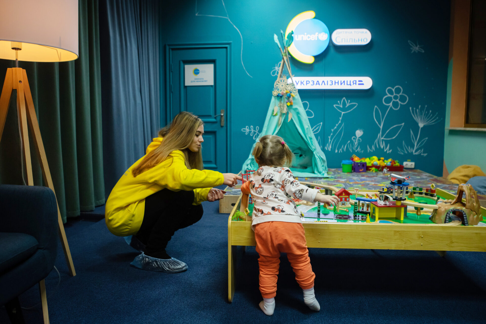 A kijevi vasútállomáson működő központ egyike annak a húsz gyerekbarát létesítménynek, amelyet az UNICEF és az ukrán Oktatási Hivatal közösen hozott létre 2022. áprilisában. Ezek a központok azóta is folyamatosan működnek az ország különböző városaiban.