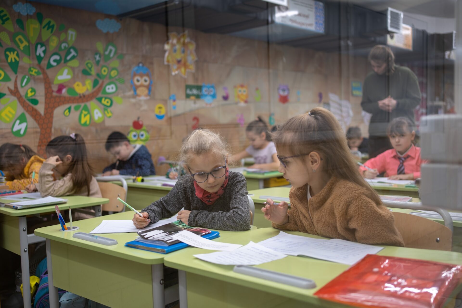 Harkivban öt metróállomáson alakítottak ki föld alatti tantermeket a Spilno Gyermekbarát Központok részeként, ahol összesen 27 iskolányi gyerek tanulhat biztonságos körülmények között. A közel 2.200 diák — köztük mintegy 300 belső menekült — napi két váltásban, háromórás turnusokban vesz részt az oktatásban.